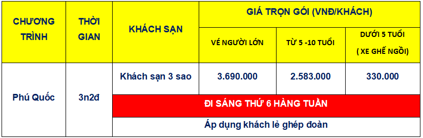 Khởi hành sáng thứ 6 hàng tuần